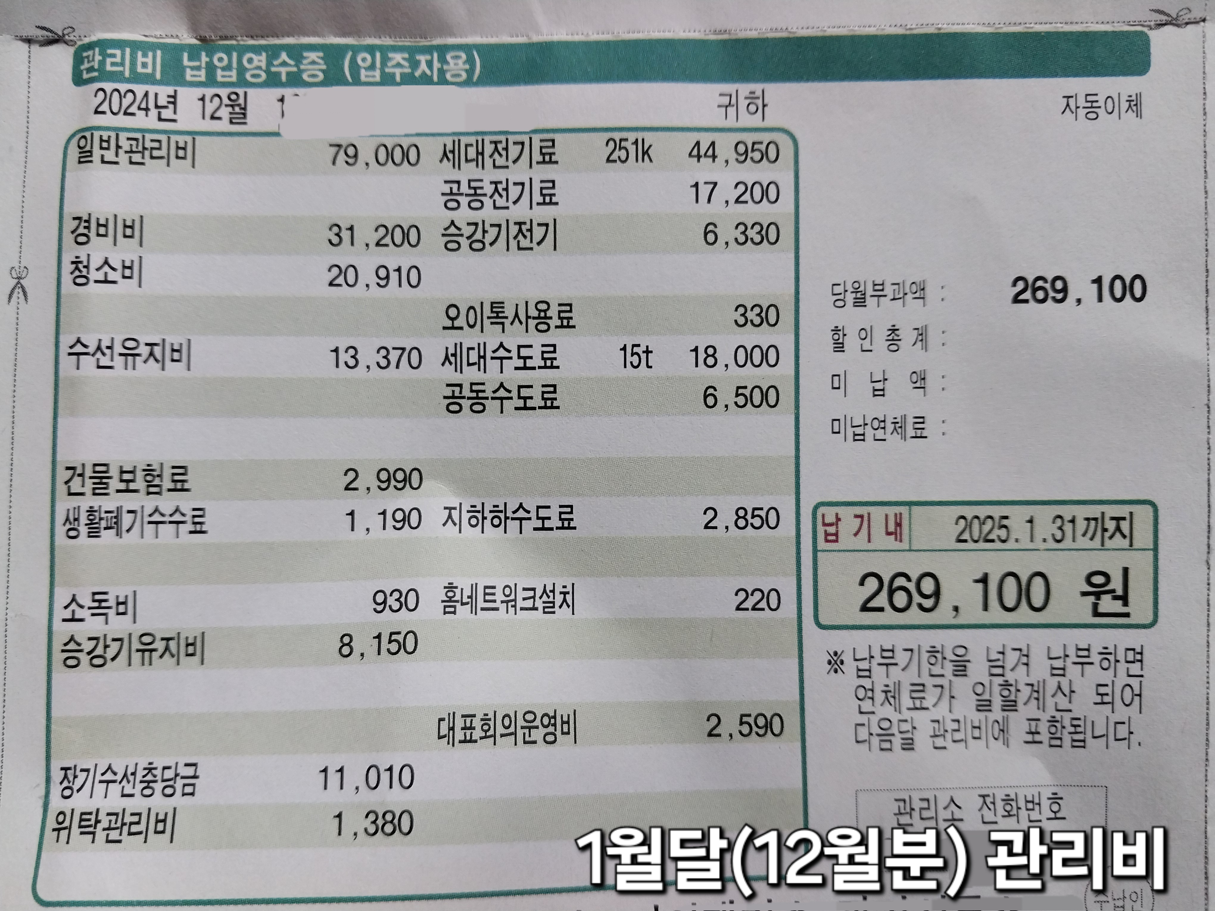 2024년 10월분(11월 납부 분) 관리비부터 꾸준히 기록 중