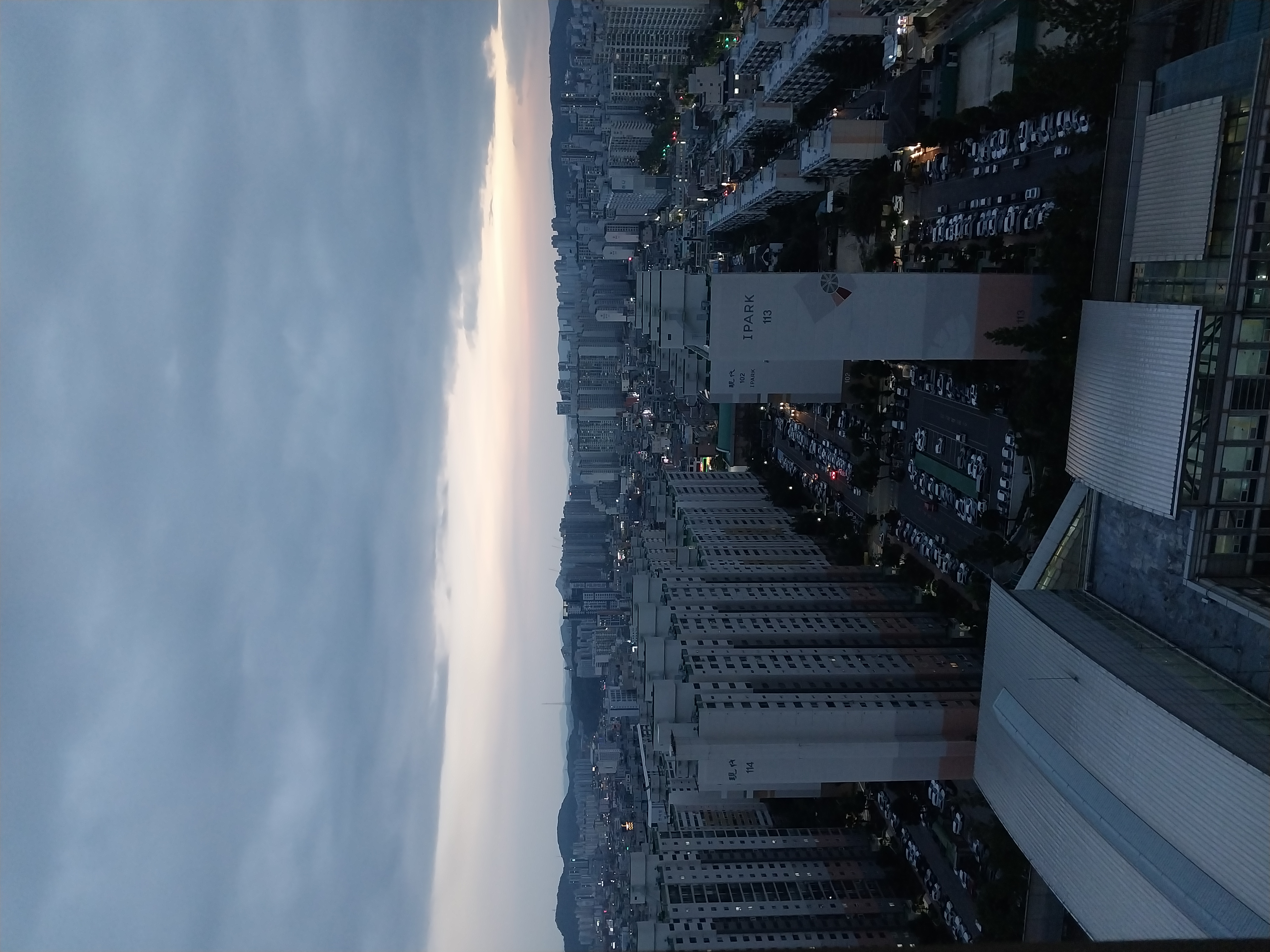 하지가 지난 지 얼마 안되니 저녁임에도 이리 밝구나. 오른편 건물 서쪽이라 해가 그리로 넘어간다.
