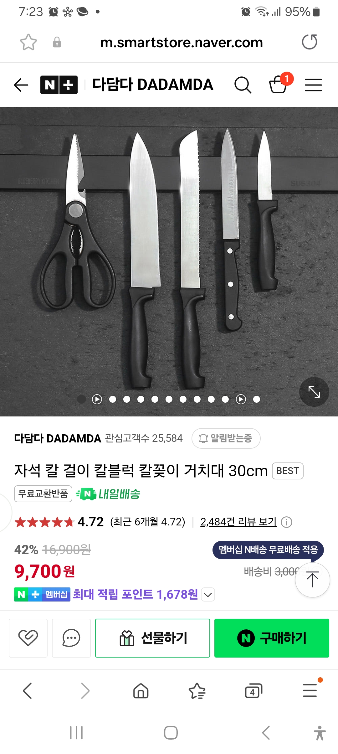 그 옆에 매달아둔 고깃집 가위(거북가위라는 국산메이커다)가 더 튼튼하고 더 잘 잘린다.