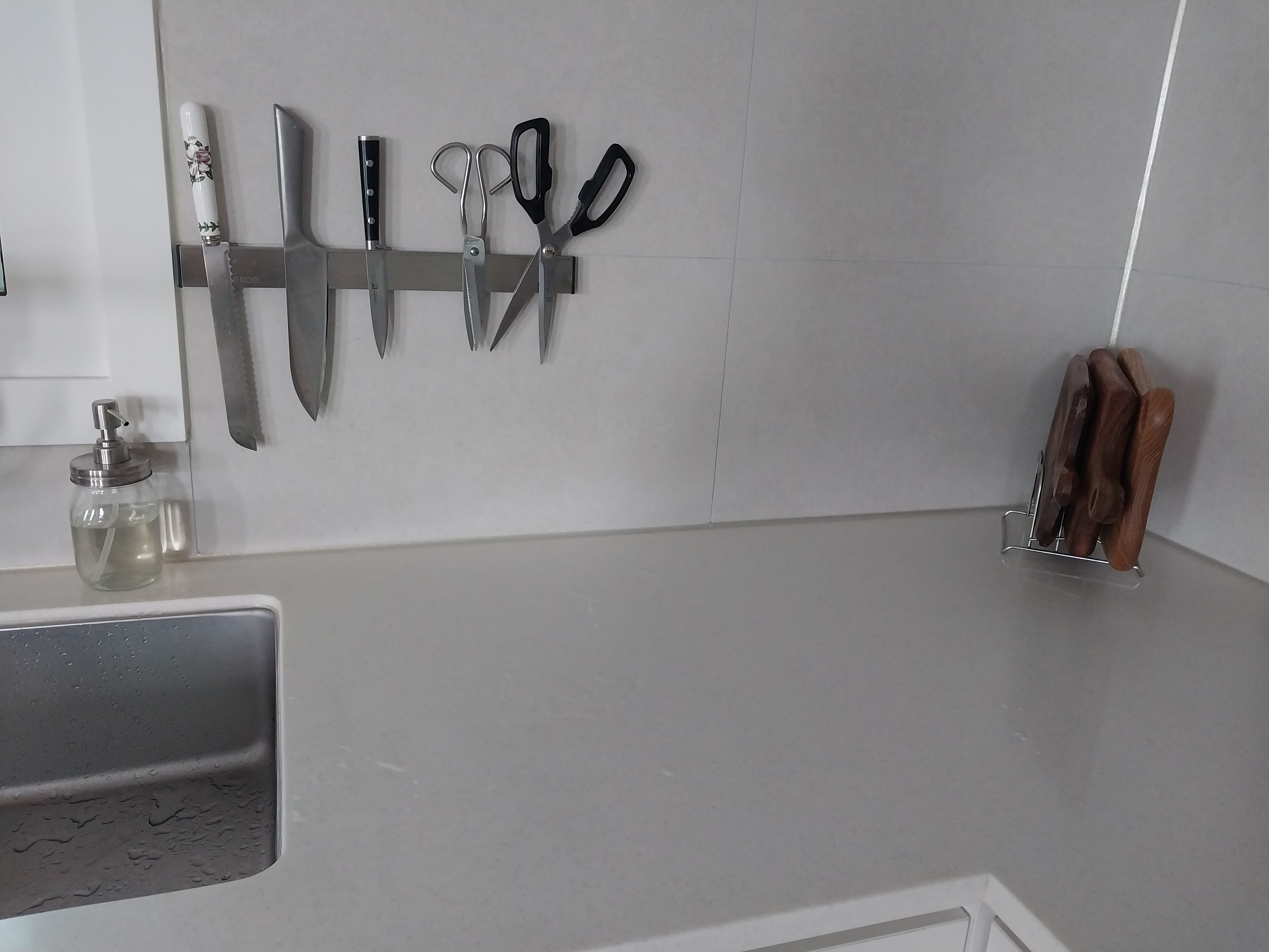 칼가위들을 다 꺼내 조로록 매달아두니 좀 무서운데 쓰긴 편할 듯
