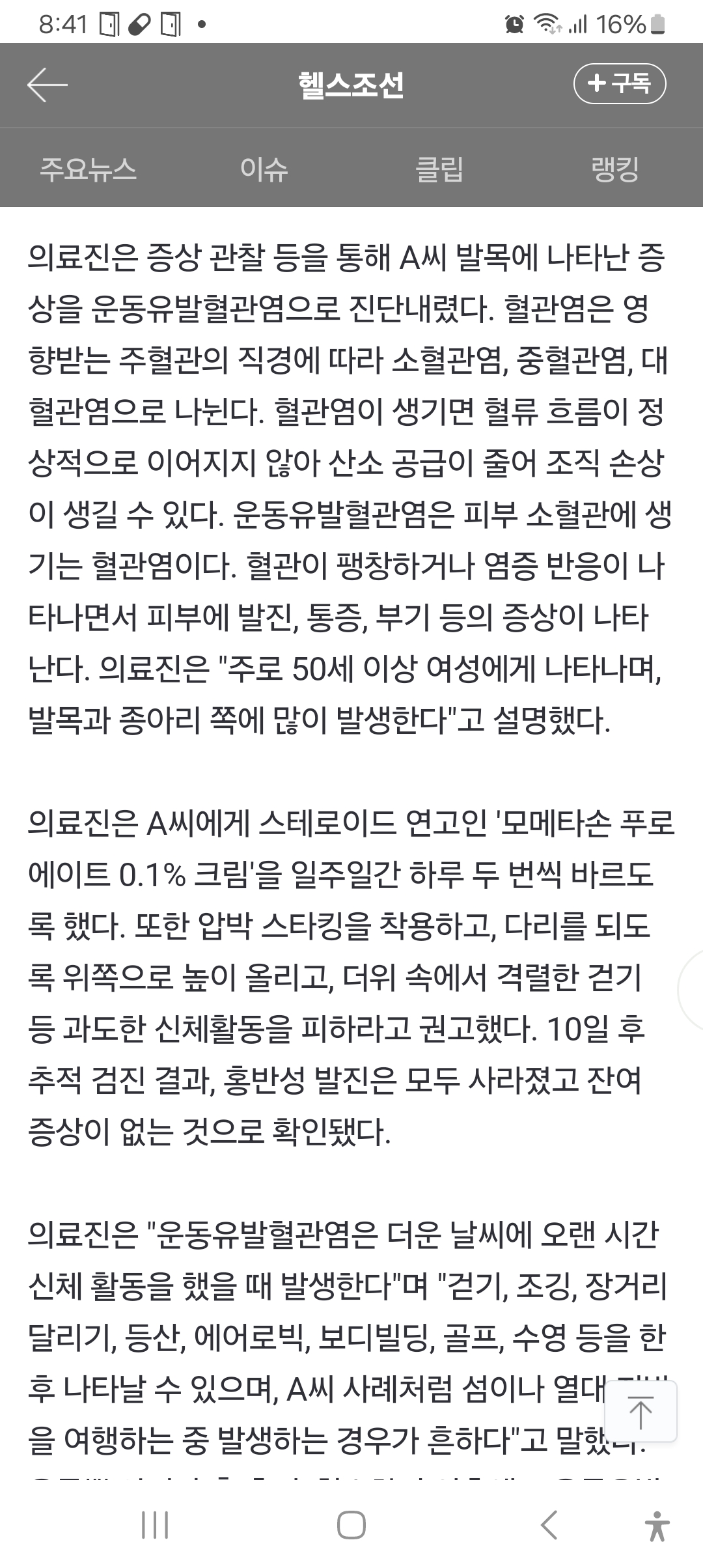 어째 "운동유발성혈관염"인 듯해. 본문