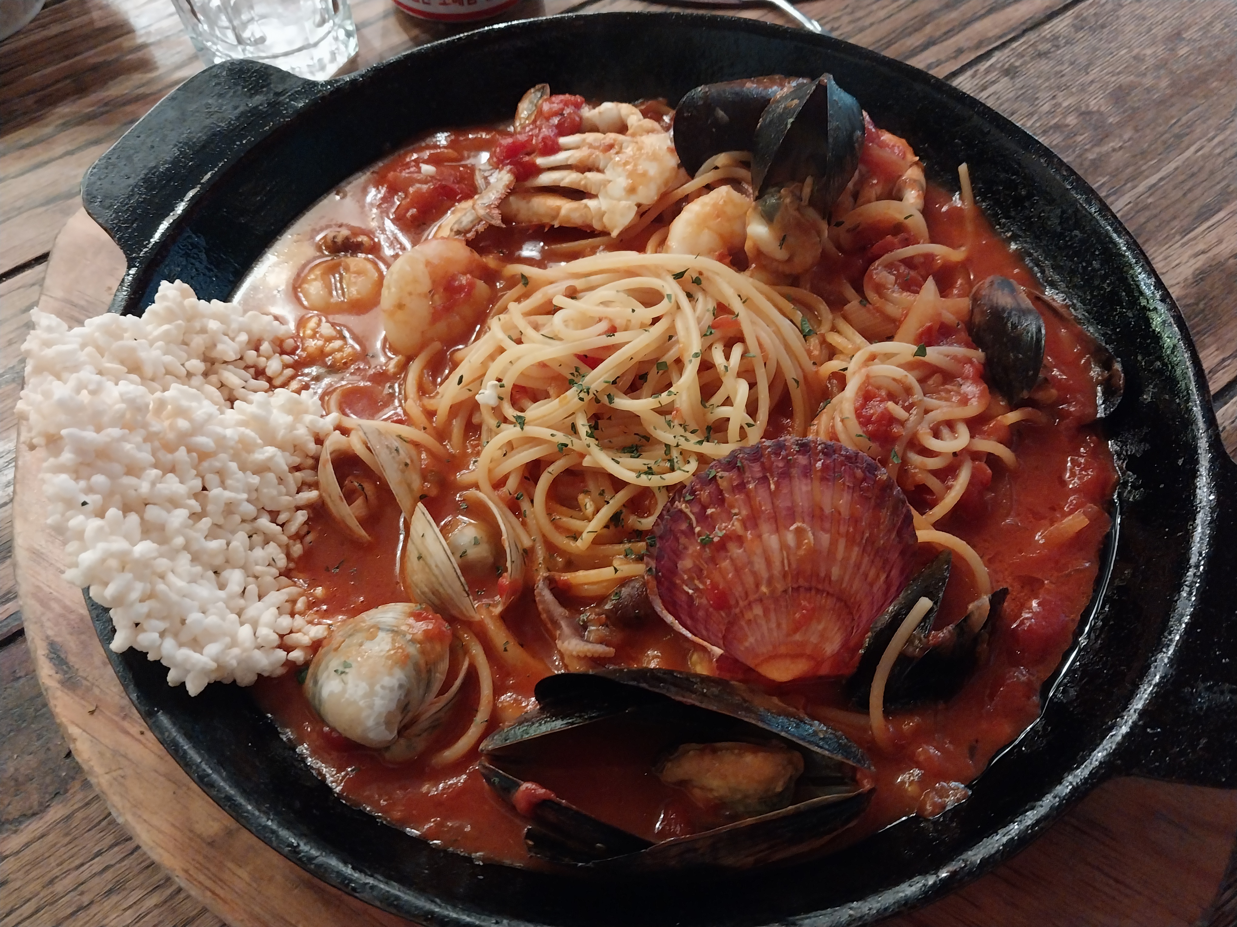 플라잉팬에선 캐치테이블로 미리 예약해 둔 덕분에 우리 가족이 가장 좋아하는 자리에 앉았다.