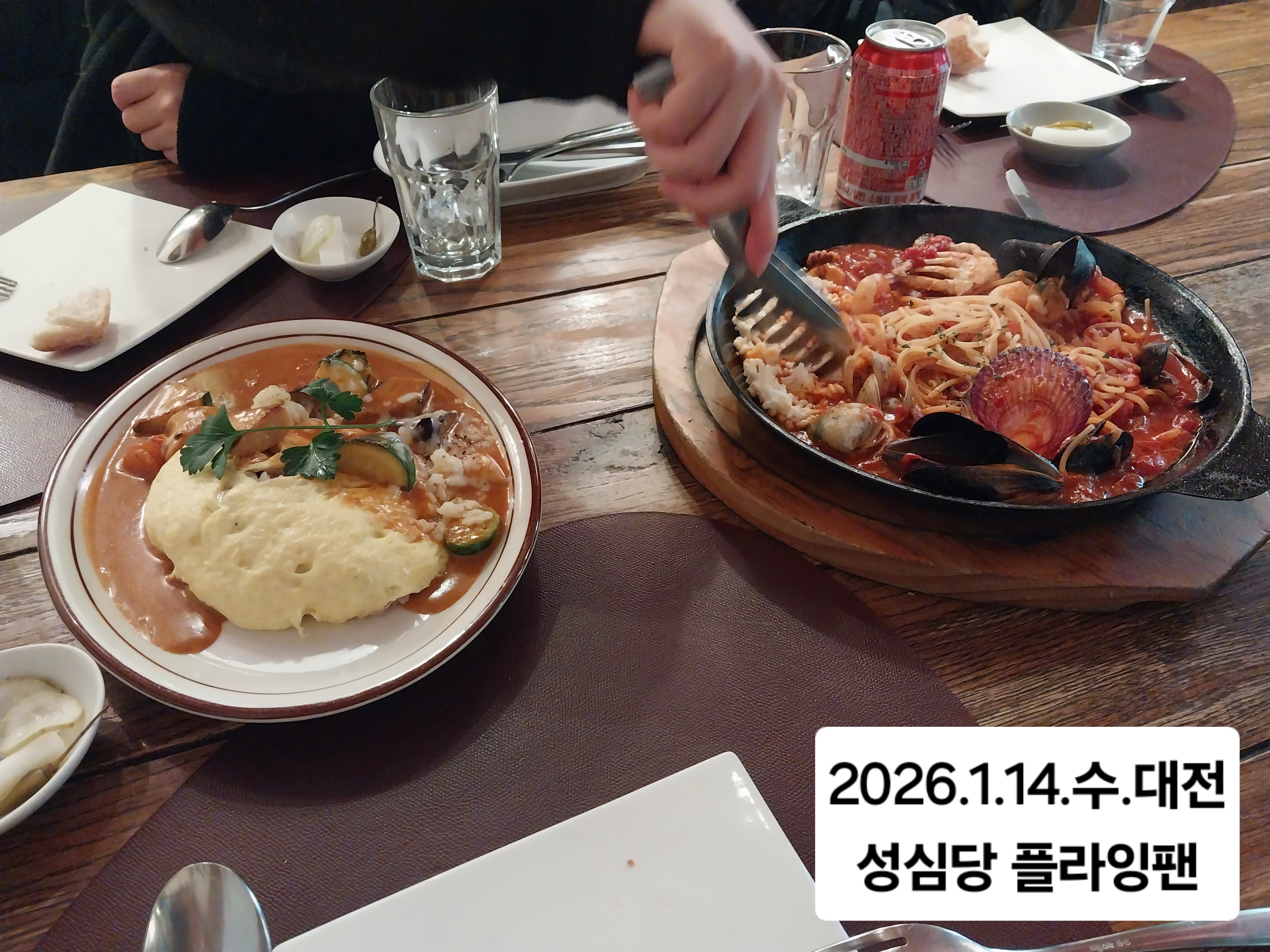 요즘같은 딸기시루철엔 (성심당 부띠끄엔 케이크 줄이 하도 길어) 성심당 플라잉팬 가는 걸 그리 즐기는 건 아닌데, 누가 식사권을 선물해줬다. 그럼 써야지.