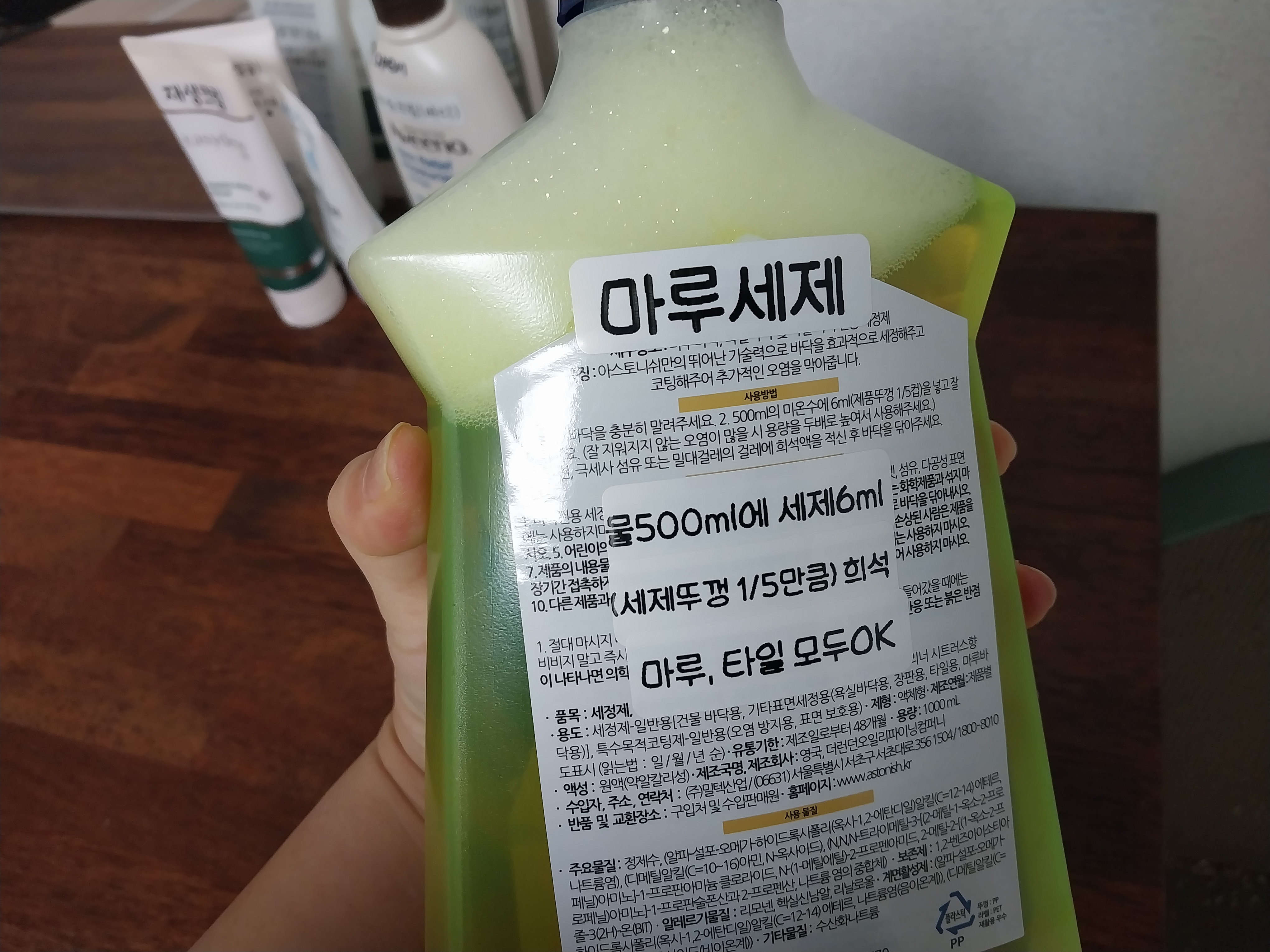 다시 물걸레질 하지 않아도 되고 그냥 걸레질 할 때 희석해 쓰면 된댔다.