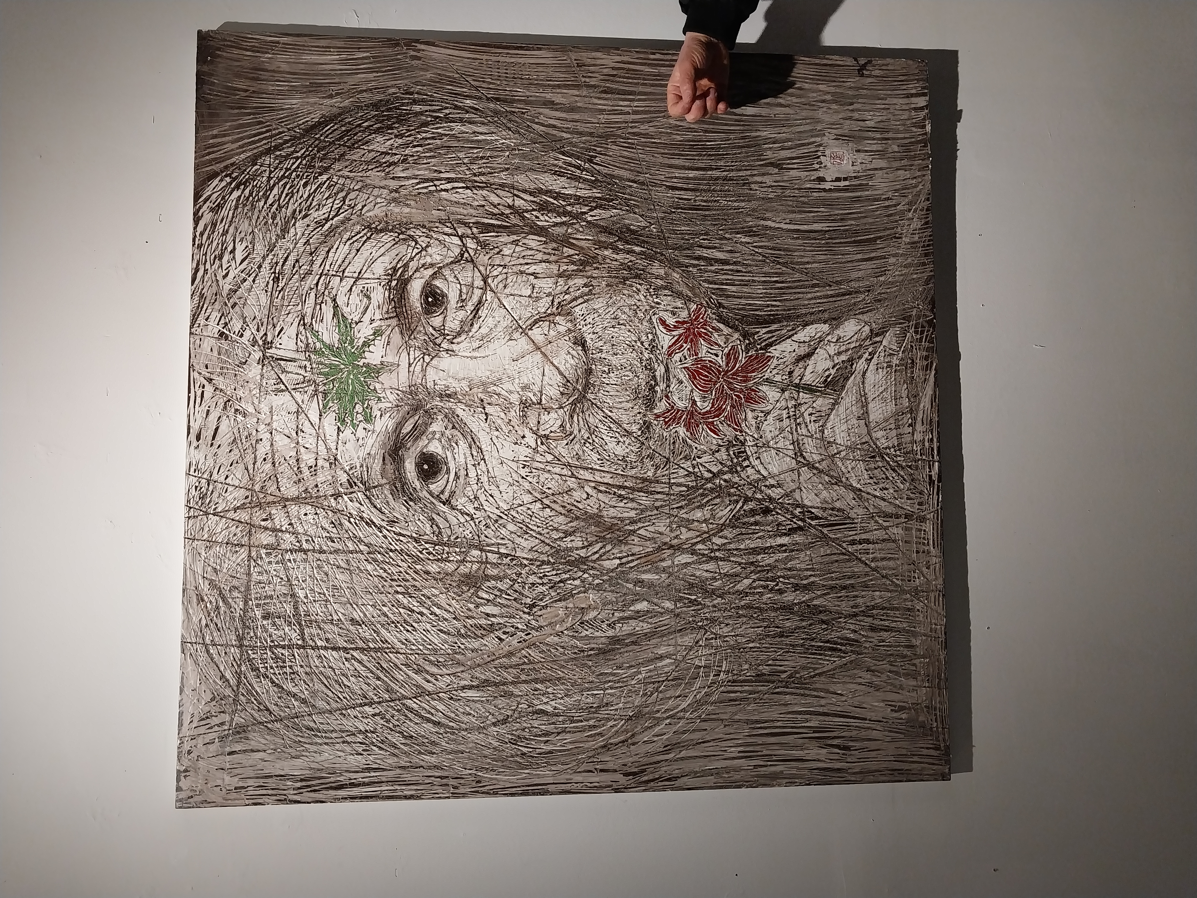 이 작품도 스카프 등으로 상품화된 일종의 도안같은 작품이랬다. 하단부는 자개로 표현했다.
